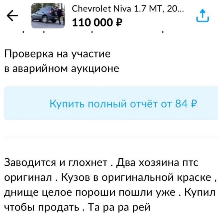 123 NE.PRIDYMAL Автомобильное сообщество Честный перекуп 3 года назад Показать полностью 3 Перекупщики Авто Хлам Длиннопост Скриншот 1 1 1 Ещё 0