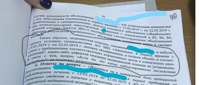 Ладно, погнали дальше. Сейчас буду очень кратко: экспертиза длилась более 1, 5 лет. И в начале апреля 2023г. Мы наконец увидели заключение эксперта. Заключение эксперта №140/22, в котором эксперты выявили нарушения, описали их достаточно подробно, сделав выводы, что эти нарушения не повлияли на течение пневмонии. Да антибиотикотерапия была начата с опозданием и не тем антибиотиком, осмотр лечащего врача случился всего через неделю, и вообще все это время ваше состояние стремительно улучшалось, и в итоге улучшилось до такой степени, что стало жизнеугрожающим, но это потому что вы такая, это ровным счетом ничего не значит- вред здоровью не причинен. Такие выводы, мамой клянусь)))