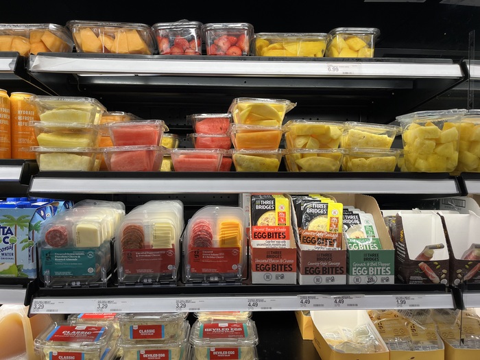Фрукты и овощи есть как нарезанные, так и в первозданном виде - кстати очень удобно, особенно если ешь не дома.