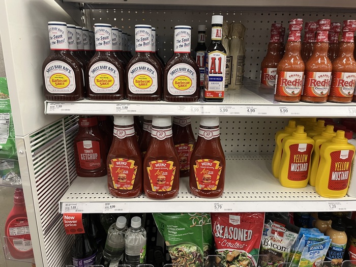 Соусы чаще продают в огромных тарах, найти кетчупа 200-300 грамм мне не удавалось, такая же тема с майонезом - сразу литр тебе в банке. И еще, тут вообще не наблюдаю мягкой упаковки для соусов, к каким привык дома. Все либо в пластике или стекле.
