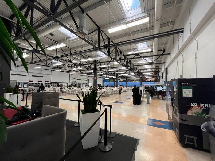 На фабрике много кафе, есть много холодильников чтобы оставить свой ланч, куча микроволновок.