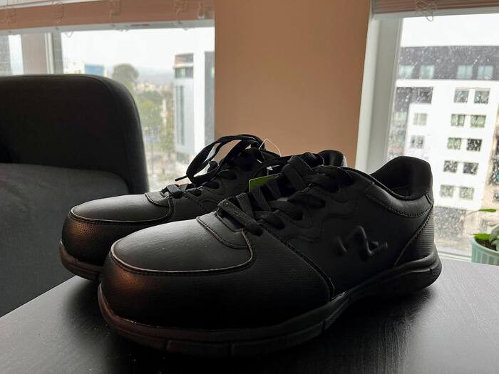 Защитные ботинки с пуленепробиваемыми носами. Одежда вся новая, раз в пол года можно весь этот набор обновлять.