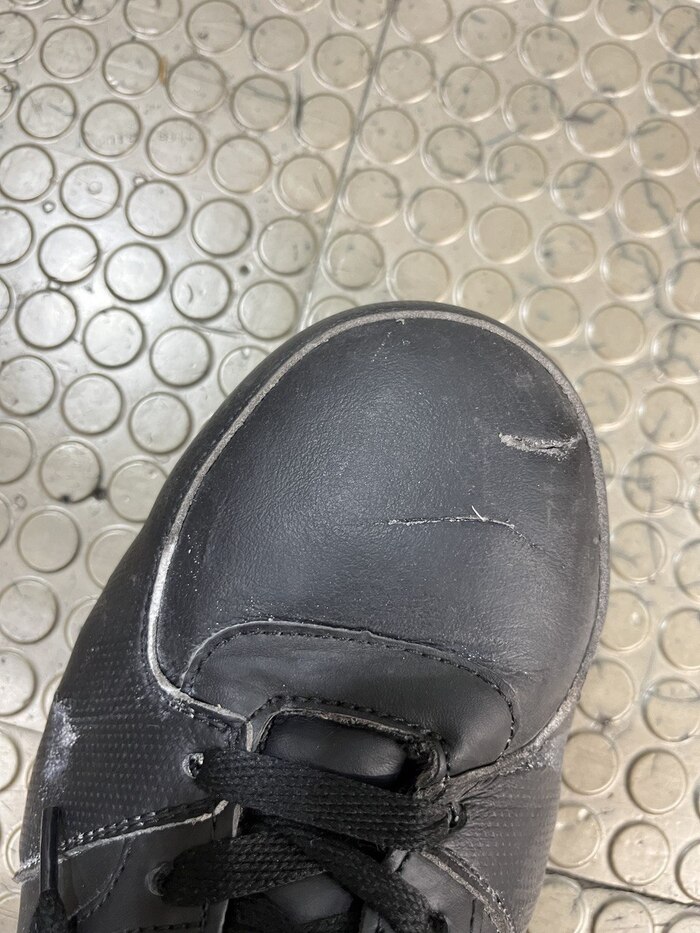 Работал на станции, где нужно на форму устанавливать кожу для сидений, ее нужно немного растягивать чтобы клипсы защелкнулись на креплении. Делается это на таком монументе стоящем на трубе (да, объяснятель я тот еще) так вот, в один из моментов когда я потянул за край кожи, этот "монумент" отвалился с трубы и рухнул аккурат мне на ноги (оказалось что он весит килограмм 20-30, поскольку поднял я его, не без труда), я больше напугался что сломал дорогое оборудование, но меня перевели на запасной и я продолжил работу. Только на следующей день, когда перед сменой я одевал защитные ботинки, я увидел это: