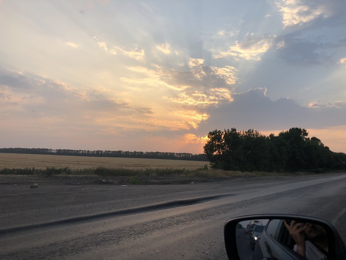 До Москвы мы доехали быстро и без проблем. Далее проехали Воронеж и начали движение к Ростову, так же без приключений. Ехали спокойно по трассе М4 Дон, которая в неплохом состоянии. На подъезде к Ростову, случились дорожные работы и мы поверив яндексу поехали их объезжать, что было большой ошибкой. Сделали безумный крюк по проселочной дороге, чтобы сэкономить 5 минут от силы. Так же по пути остановились чтобы досмотреть матч чемпионата мира Россия – Испания, получили незабываемые ощущения когда наши вышли в 1/ 4 . Хоть я и не болельщик, но тоже переживал, как и все.