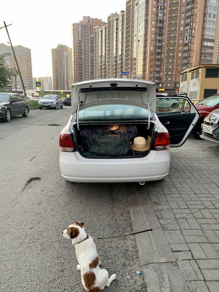 Большое переживание вызывало наличие места в Поло, ведь нас ехало 4 человека с собакой, две палатки, 4 спальника, 4 пенки, личные вещи,, стол 4 стула, куча оборудования для фото/видео съемки, а багажника на крышу нет и тратить кровные перед отпуском очень не хотелось. Но опасения не сбылись, мы не без усилий убрали вещи в багажник и немного в салон, все готово к старту.