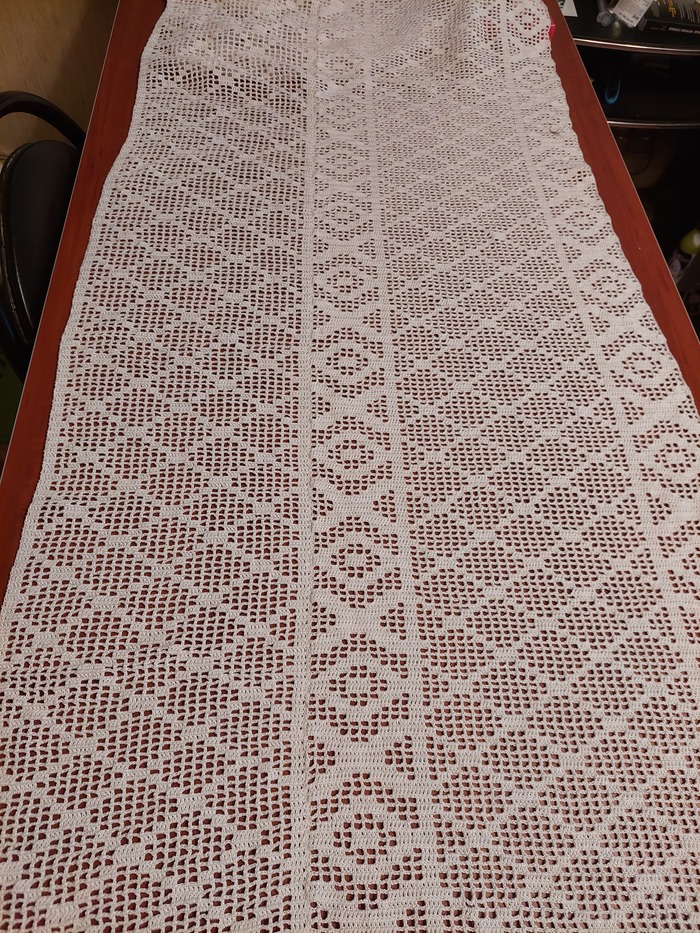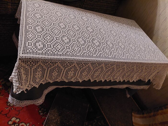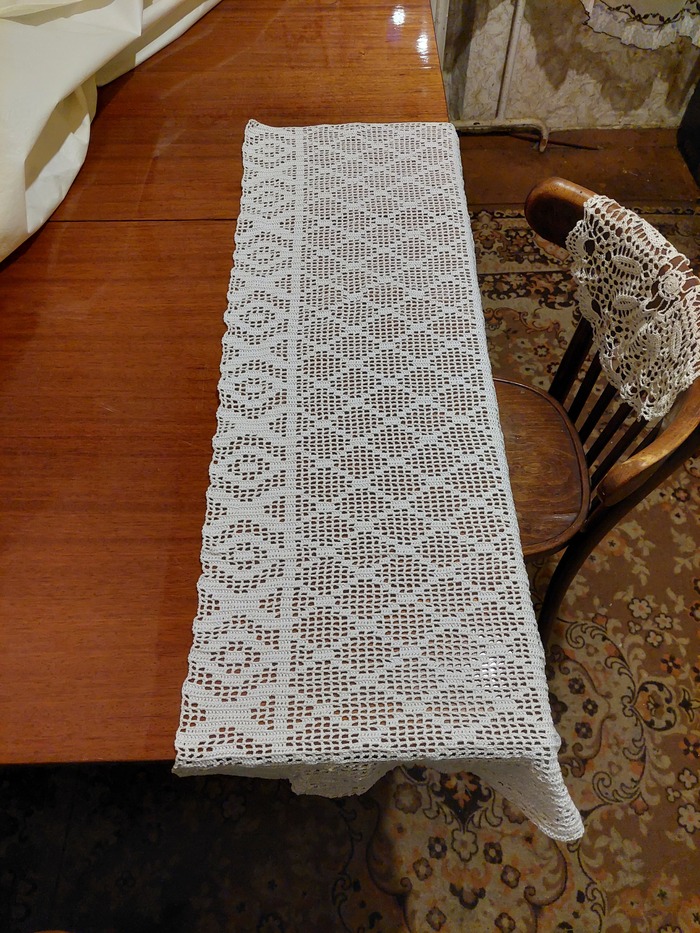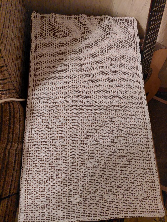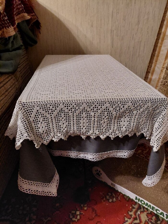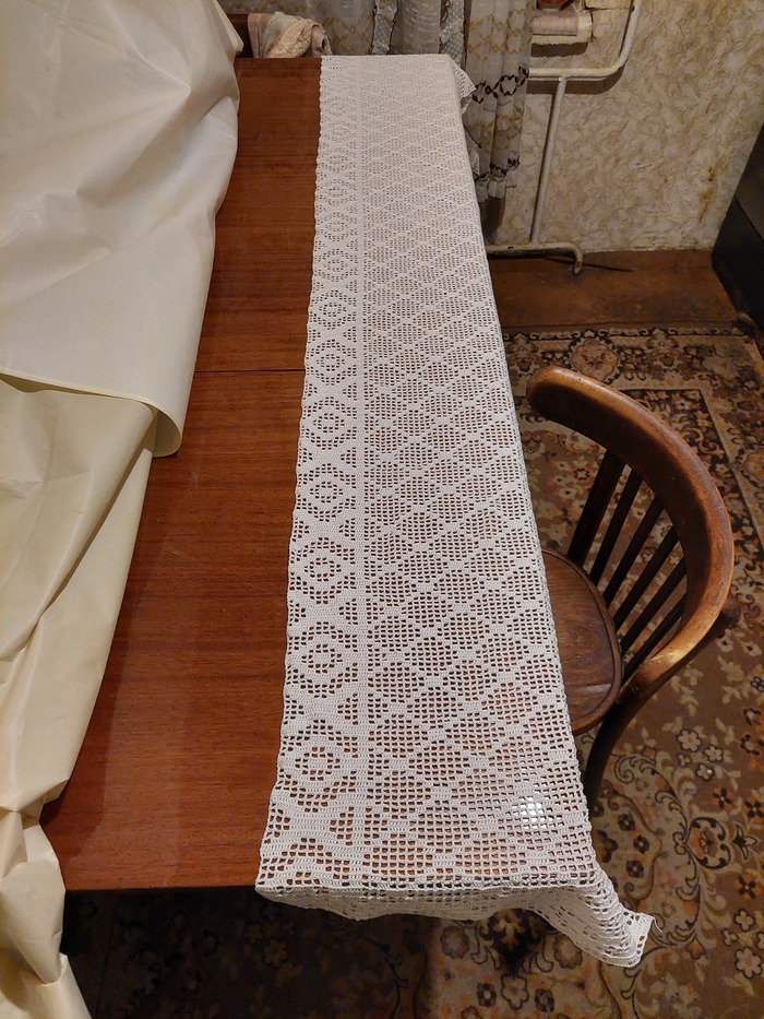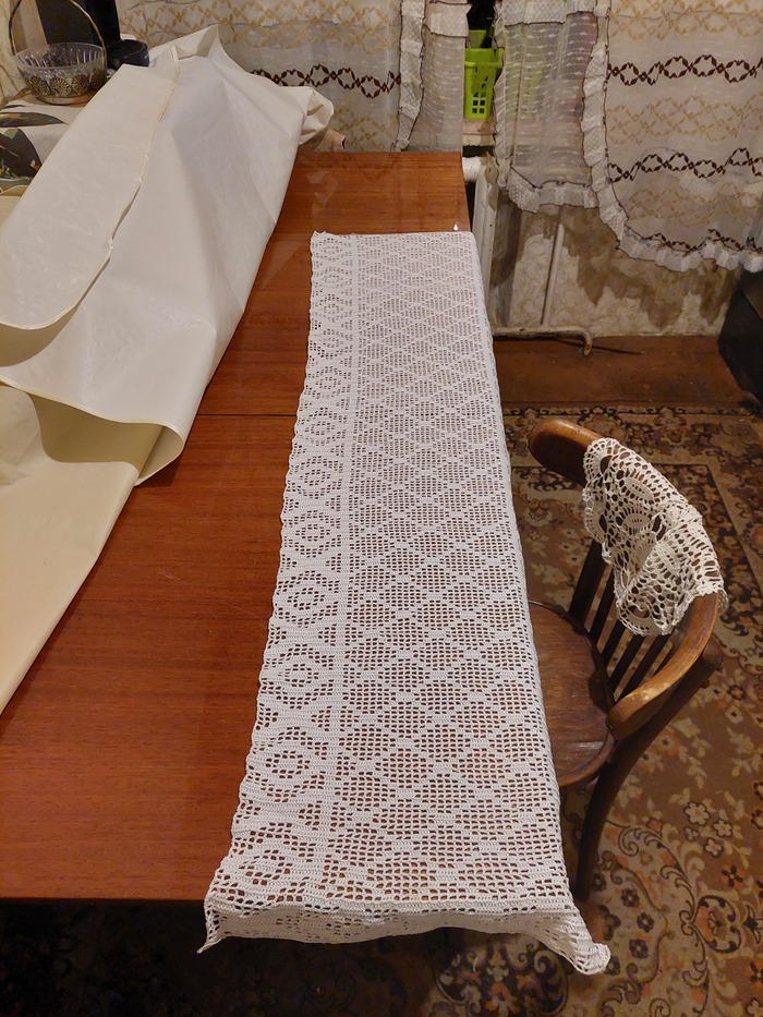 Но этого кружева мне не хватило, а потом как-то руки не доходили, в общем в этом состоянии скатерти прожили пол года) Но сегодня свершилось чудо!