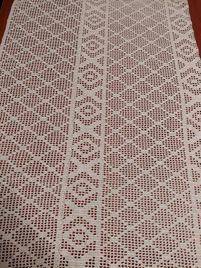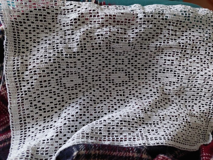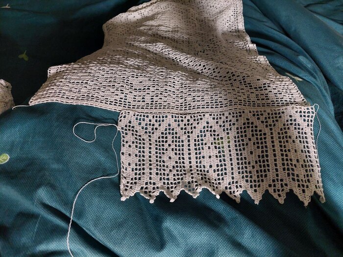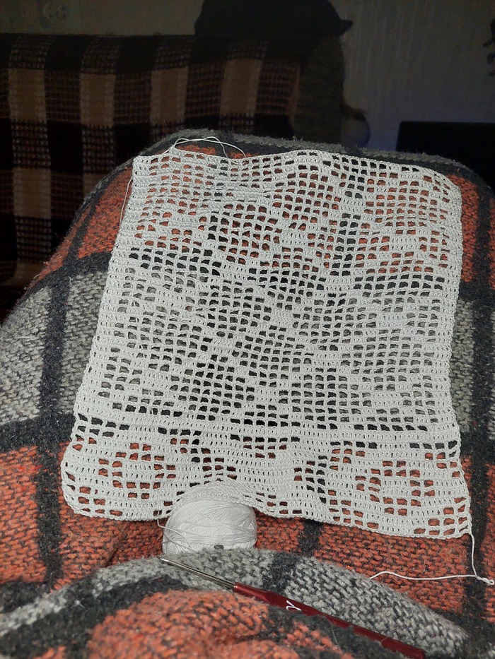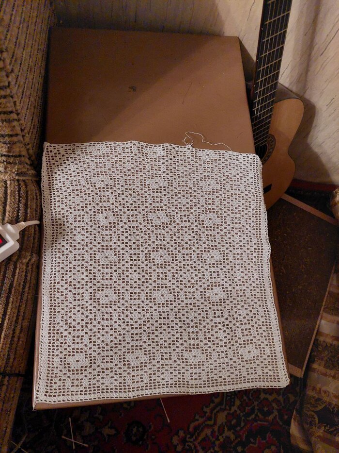 Здесь второе доказательство, что я не самый умный человек. Так же, как и на большой скатерти я зачем-то начала пришивать отдельную часть. Это долго, муторно и в целом противно. В дальнейшем я уже научилась привязывать часть друг к другу. Так и смотрится аккуратнее и процесс идёт легче.