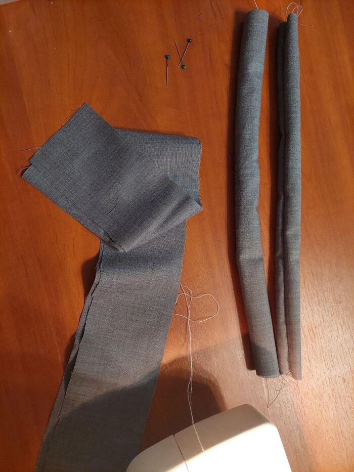 Здесь скатерть уже закончена, но т.к. она всё-же ажурная мне пришла в голову идея, что непременно нужен подскатёрник. И именно из серого льна. О том, что у себя в городе приличного льна я найти не смогла я могу ныть долго, но нашла то, что его напоминает. Серую костюмную ткань, судя по составу, "с элементами льна".