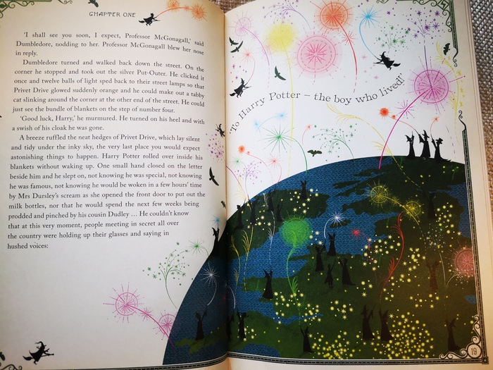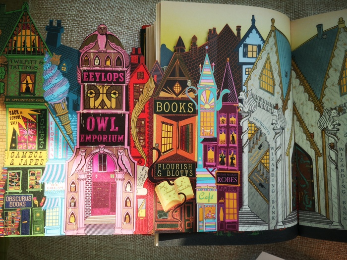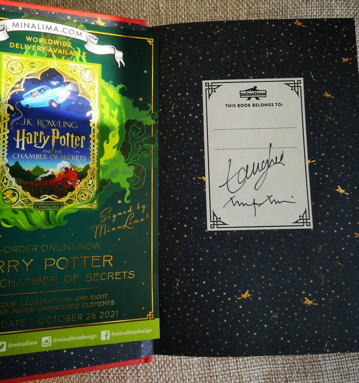 Стал искать. Изданий ГП много. Зарубежных изданий очень много. В процессе поиска наткнулся на издательство Миналимы. Мина и Лима это фамилии двух художников, которые разрабатывали дизайн для фильмов про Гарри Поттера. Сейчас занимаются созданием книжек и атрибутики по этой же вселенной. Посмотрел немногочисленные рисунки из книги, на тот момент бывшие в сети, и понял, что вот оно, это моё!). В свободной продаже на тот момент этих книг я не нашёл, книжка была новая. В последствии уже видел что книги бывают иногда на полках в известном магазине иностранной литературы на б.Татарской. Да и в онлайн магазинах сейчас ищется без проблем. Я пошёл другим путём и заказал напрямую на сайте издательства. Как бонус там обещали книжку с автографами создателей этой студии. Стоило мне это около 35 фунтов, и доставка вроде 15. Но оно того стоило!