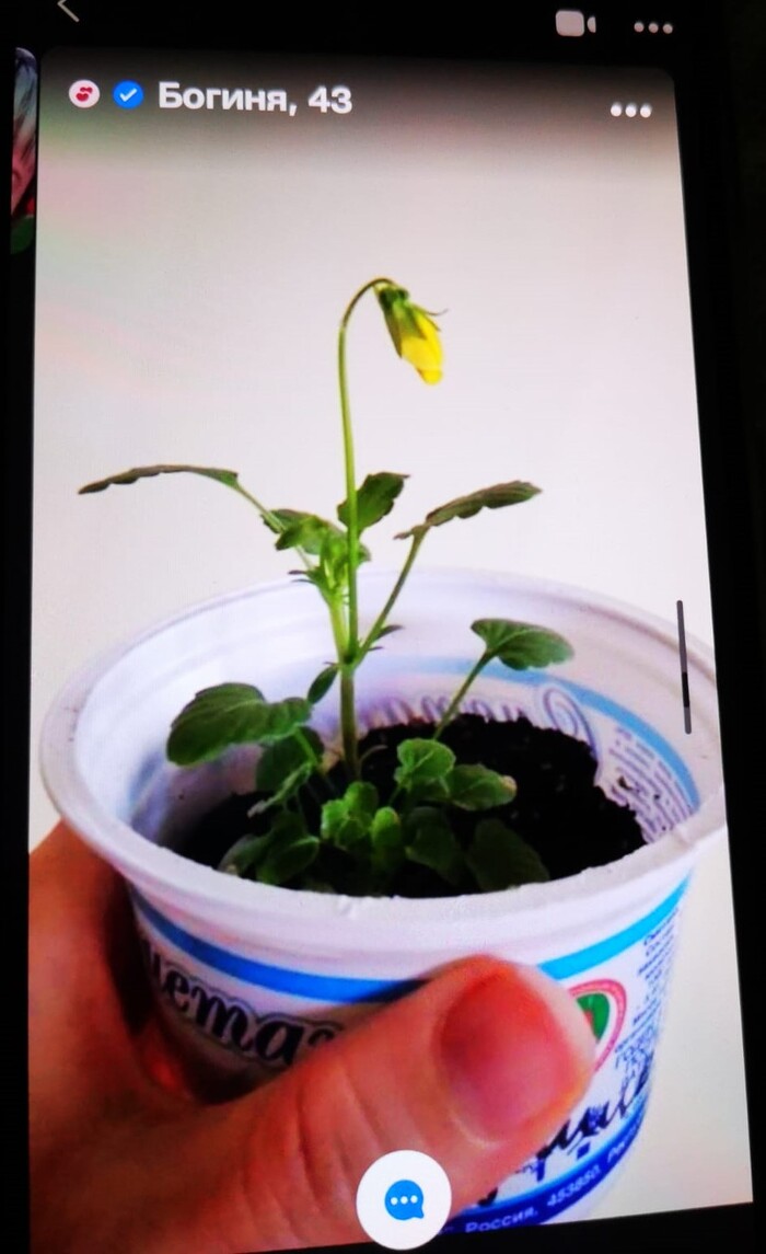 Моё видение, что здесь продемонстрированы потрясающие навыки хозяйственности. Скорее всего, она богиня плодородия. Вырастить цветочек в баночке, это вам не письки на заборах рисовать, и не пирожки по кладбищам тырить. Это долгий и кропотливый труд. Также хочется отметить идеальный французский маникюр, который нам демонстрирует богиня. К моему великом сожалению, богиня не снизошла до меня, и не удостоила своим ответом. Да и хуй с ней. Переходим к следующей анкете.