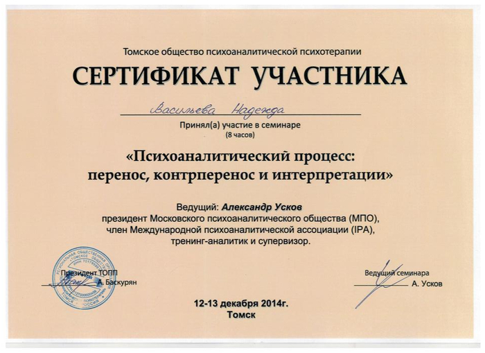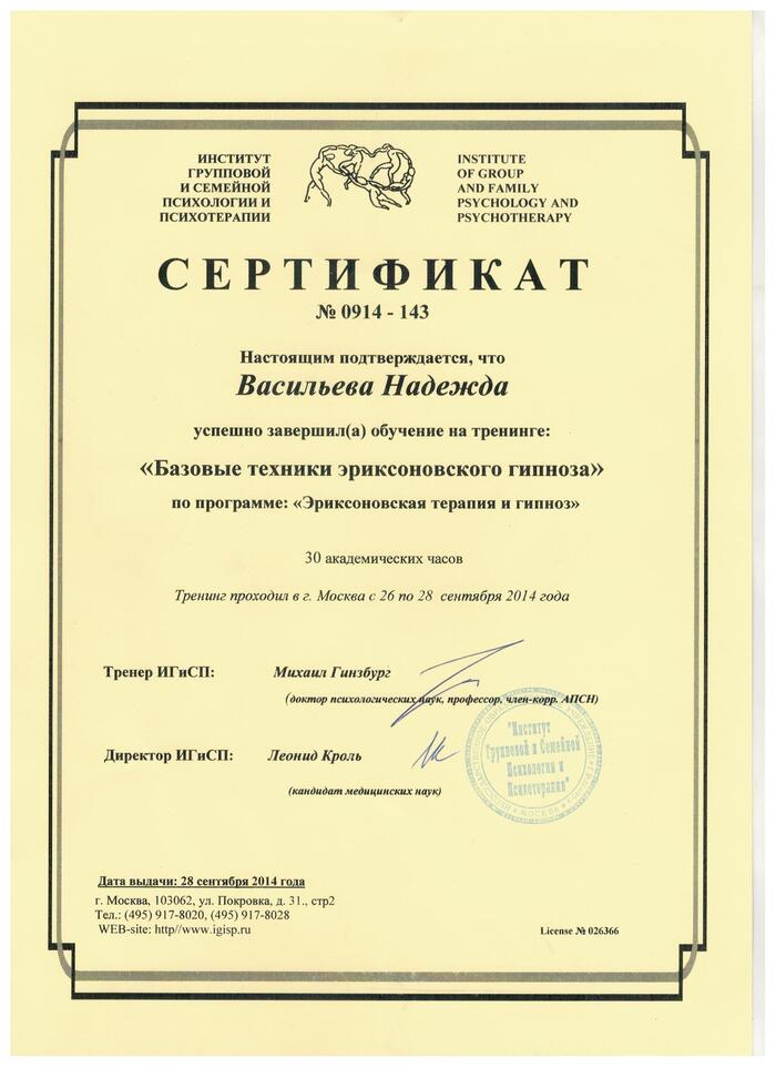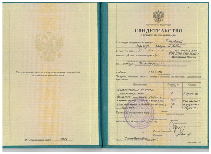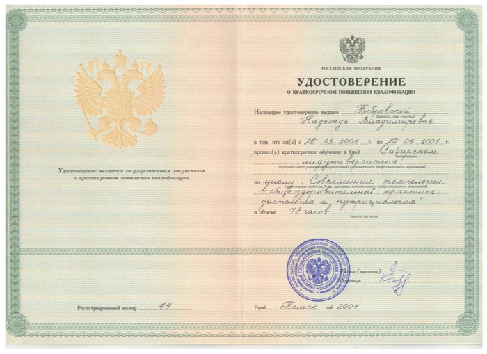 Хочу особо отметить обучение в институте превентивной интегративной медицины PreventAge , окончание в 2014 году (первый выпуск данного учреждения), которое во многом изменило и дополнило понимание причин и методов терапии, различных эмоциональных нарушений.
