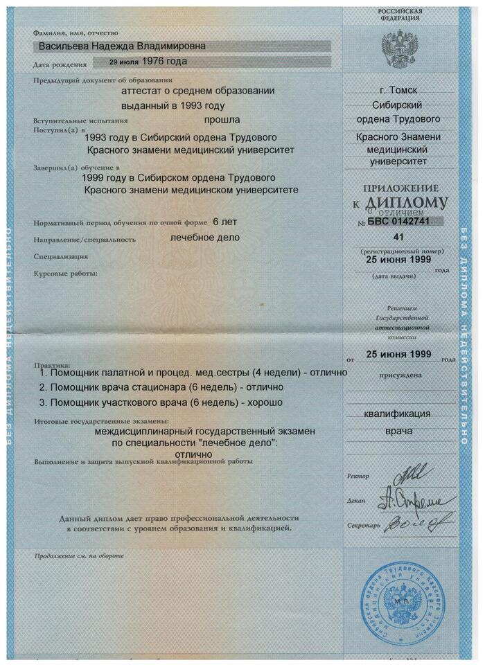 Далее поступила в Сиб ГМУ (Сибирский Государственный медицинский университет), в 1993 г.