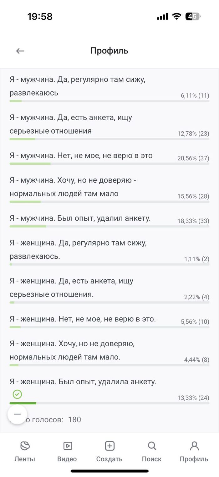 👍Получается, женщины - через одну - удаляют свою анкету. В 2 раза чаще, чем это делают мужчины. Интересно, почему? Есть идеи? Было бы очень интересно послушать обратную связь от дам !