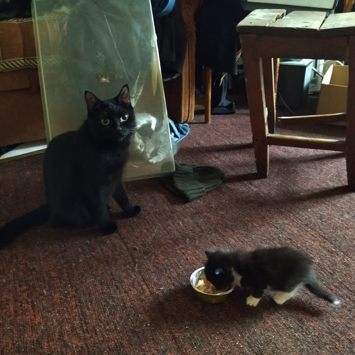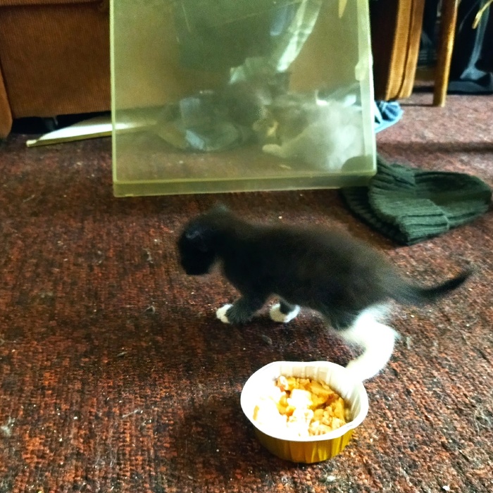 Шустрик, самый первый из коробки вылез, и у матери пищу отжимать начал.