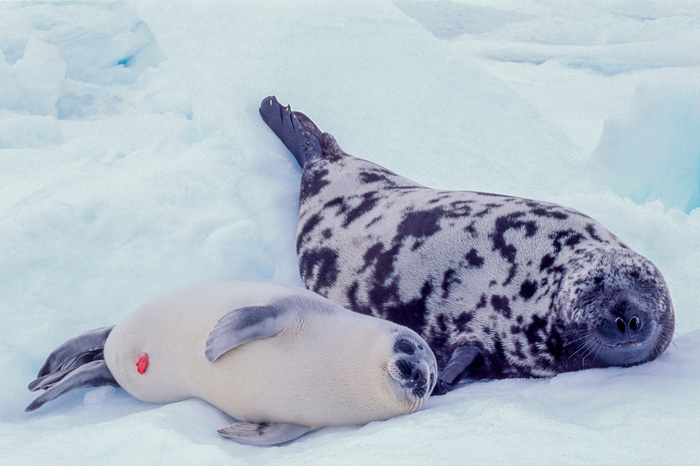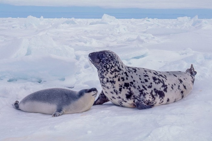 Так быстро всё происходит потому, что жирность у молока этих тюленей около 60%, а мелкий ещё и по несколько литров в день уплетает – вот и растёт как на дрожжах. Маме всё это, конечно, даётся тяжело, и она за 4 дня лактации теряет до 17% массы тела. А выкормив дитё, мать оставляет его на льдине – такой крепыш теперь способен справиться сам – и возвращается в воду, где её поджидает вернувшийся из плавания супруг. Пора новых хохлачей делать.