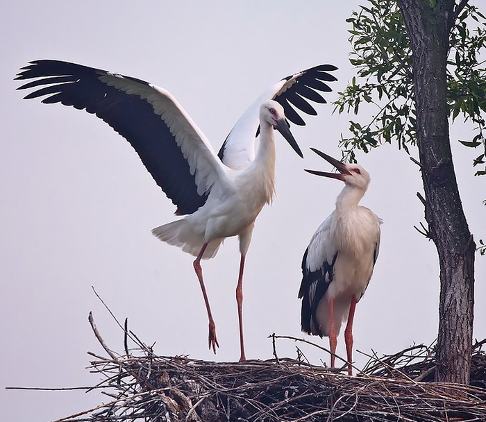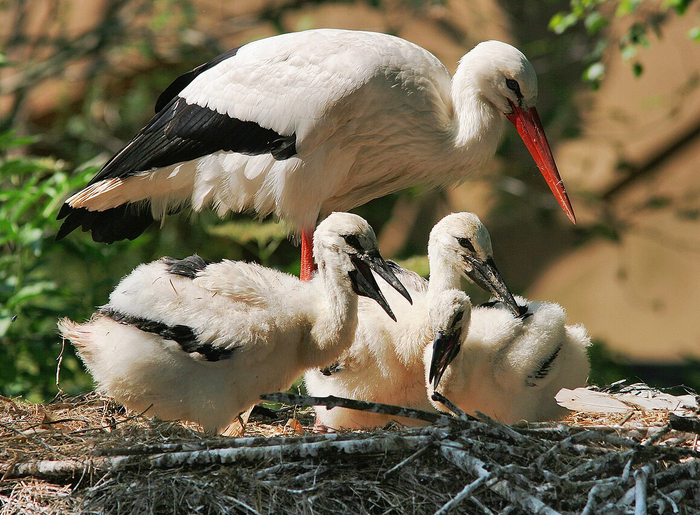 В нормальной же семье аистов в воспитании потомства в равной мере участвуют и самец и самка. Ну вот где, казалось бы, кроются истоки легенд о том, как трогательно аисты опекают новорожденных! Но и тут жизнь оказалось куда более суровой штуковиной. В семье аистов царят спартанские законы. От слабых птенцов родители безжалостно избавляются, выбрасывая их из гнезда, а пропуск в жизнь получают только самые сильные и здоровые.