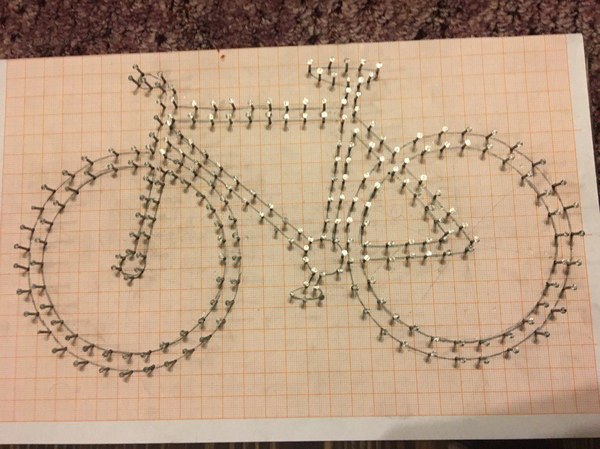 Теперь оправдываем название нашего заголовка и приступаем непосредственно к String Art. А именно, "закрашиваем" наши буквы полиамидной нитью.
