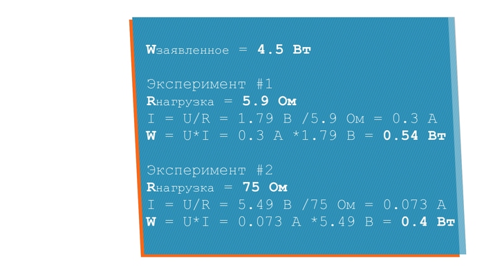 Как мы можем видеть, 4.5 Ваттами и близко не пахнет.