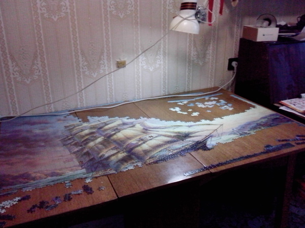 На день рождения подруга купила мне паззл на 4 000 кусочков, который я так и не собрала (стол забрали на празднования), так что мне пришлось все собранные части сложить и убрать) Как только появится больше свободного времени, обязательно его соберу, у самой руки уже чешутся ;))