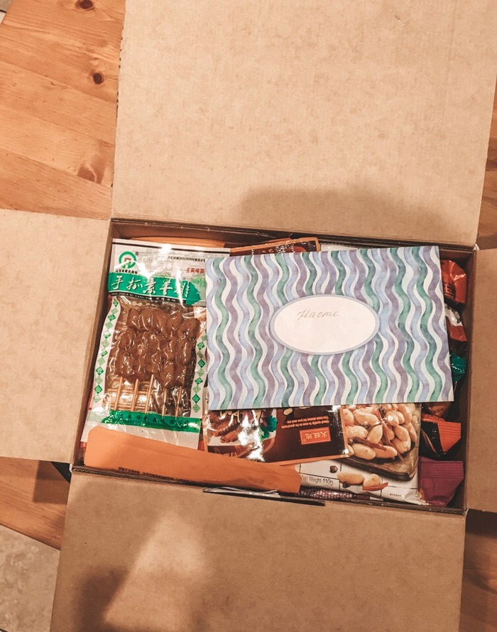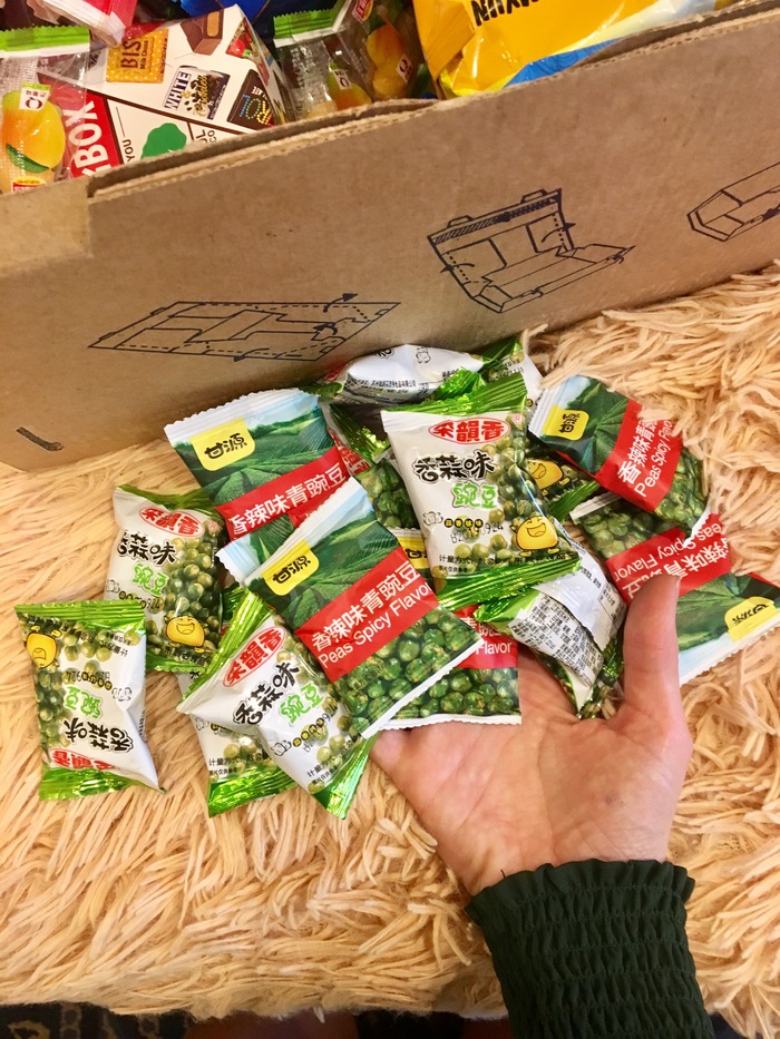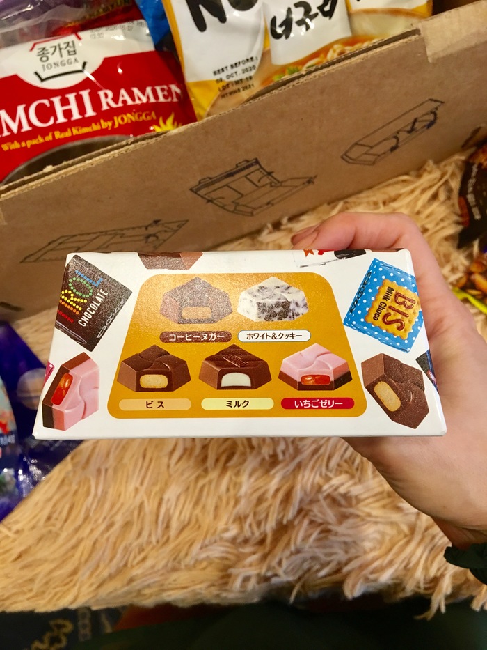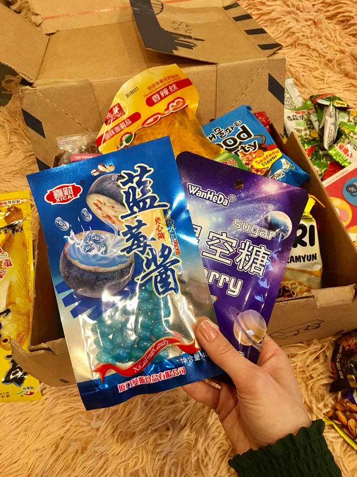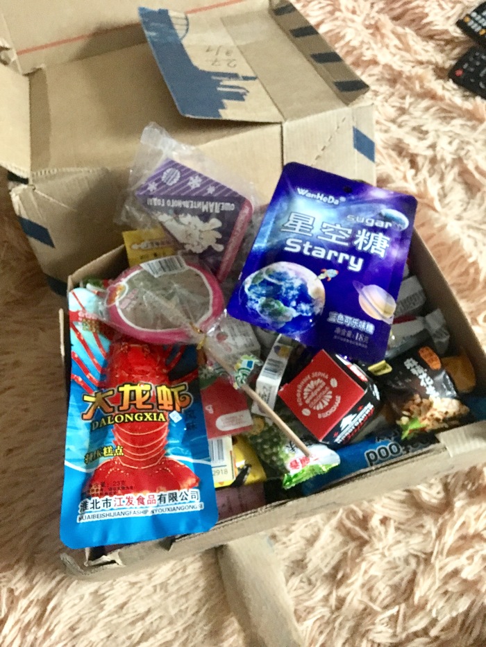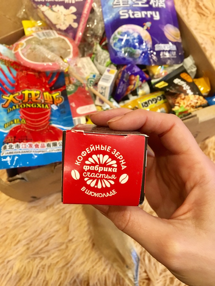 Коробочка была тяжелее в этот раз и выглядела усталой... я боялась, что в ней побывали ручонки работников почты или каких-нибудь логистов, но кроме парочки выпавших конфет на дно все выглядело целым)