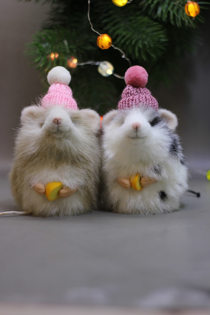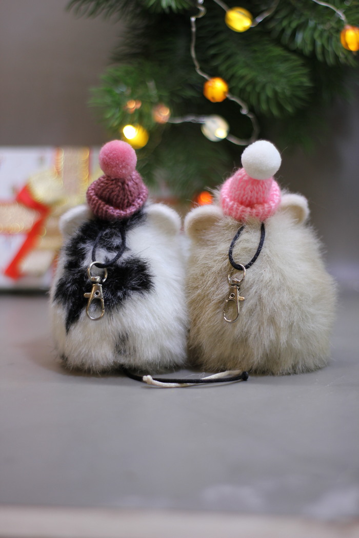 Варежки выполнены из качественного искусственного меха. Декор съёмный. Носики выполнены из полимерной глины, глаза из стеклянных полусфер. Усы из лески