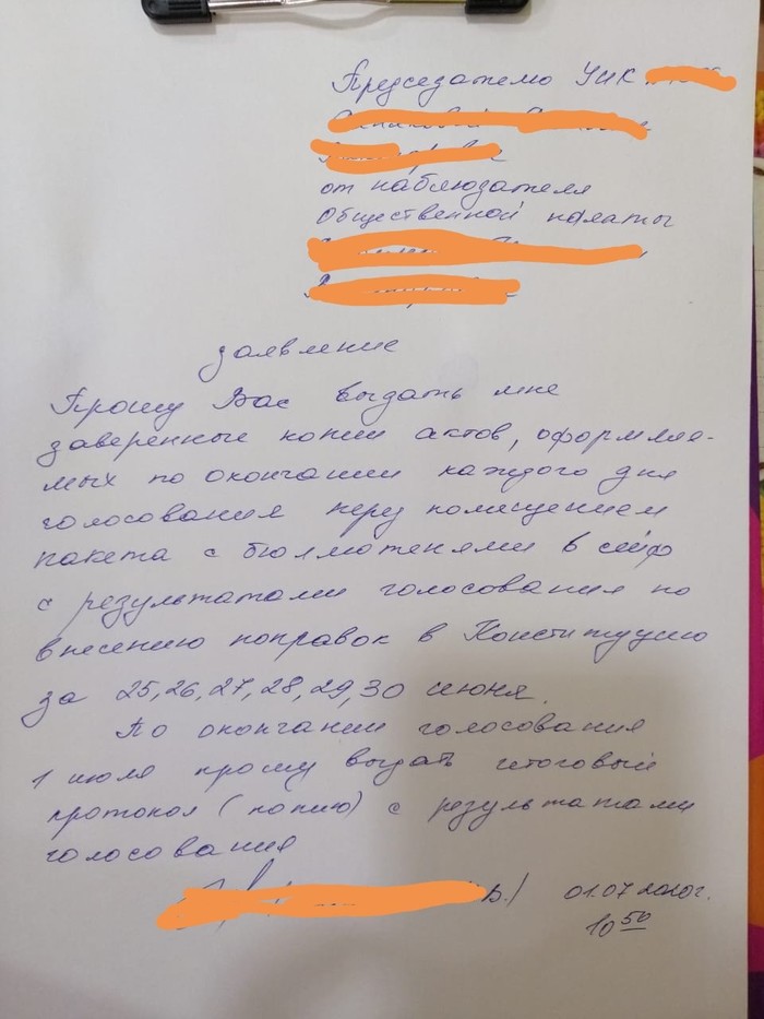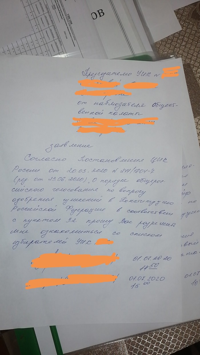 Ступор, потом отказ, дескать в списках есть персональные данные, вы ими воспользуйтесь. Отвечаю, что фото и видео списков производить не буду. Звонок вышестоящему другу, предложение посмотреть списки, при условии что будет листочками закрыто все кроме ФИО. Пишу заявление.