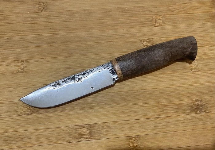 В первый раз непосредственно ковали. Прям с угольным горном, прям с молотом, прям своими руками. Из куска пружиной рессоры.