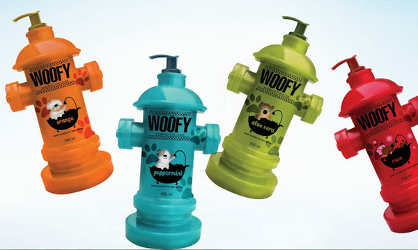 Дизайнер Citra Limanto из Индонезии разработала бренд и дизайн упаковки шампуней для домашних питомцев Woofy. Шампуни выпускаются в уникальной бутылке в форме пожарного гидранта, столь любимого домашними собаками.