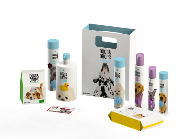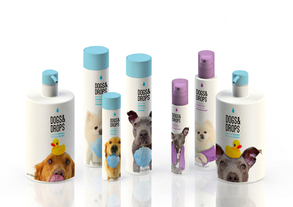 Начинающие испанские дизайнеры Катарина Пинейро и Мара Родригез придумали серию шампуней и средств по уходу за шерстью для собак Dogs&Drops в упаковке с юмором, которая немедленно заставляет забыть, как многие собаки не любят мыться.