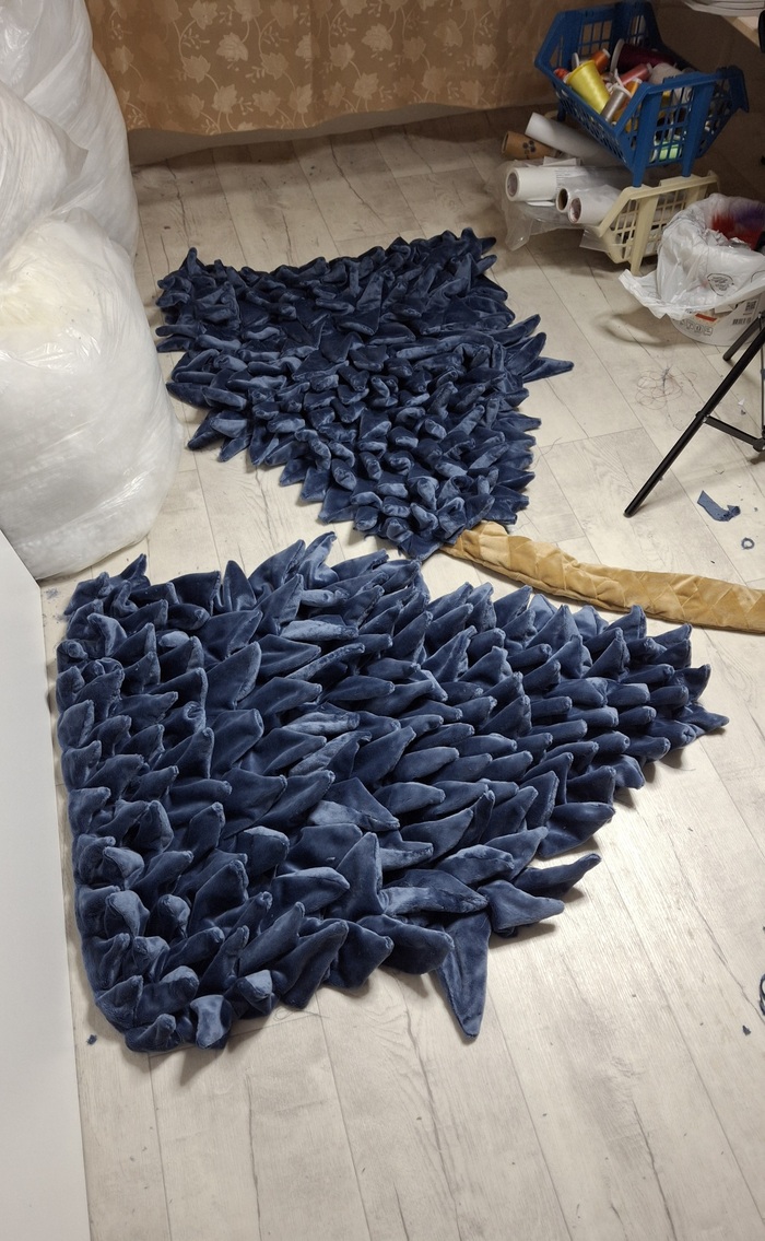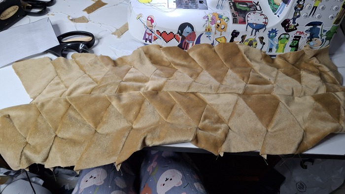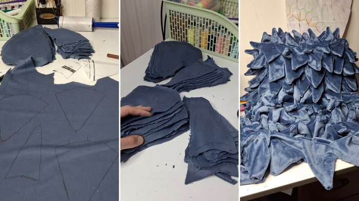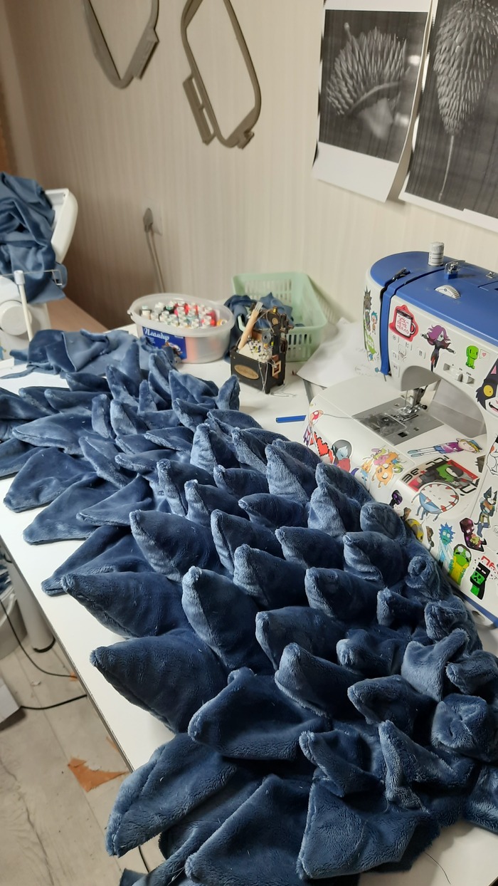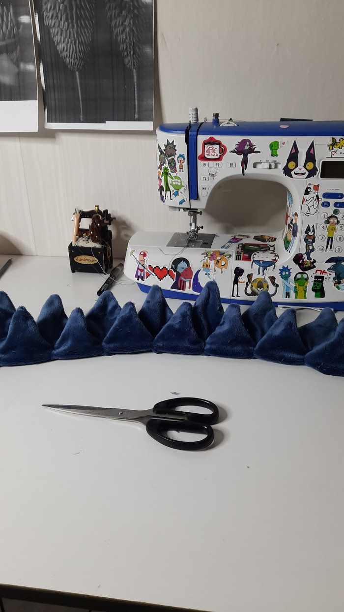 Ряд за рядом я шила шипы. Это очень долго. Кроила ещё пару деталей и снова шила.