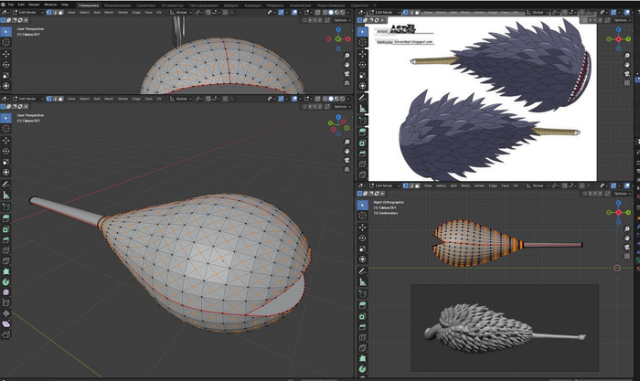 В Блендере построила основу. Чтобы понимать размеры и пропорции. За основу взяла арты с мечом и скрины чьей-то 3д модели.