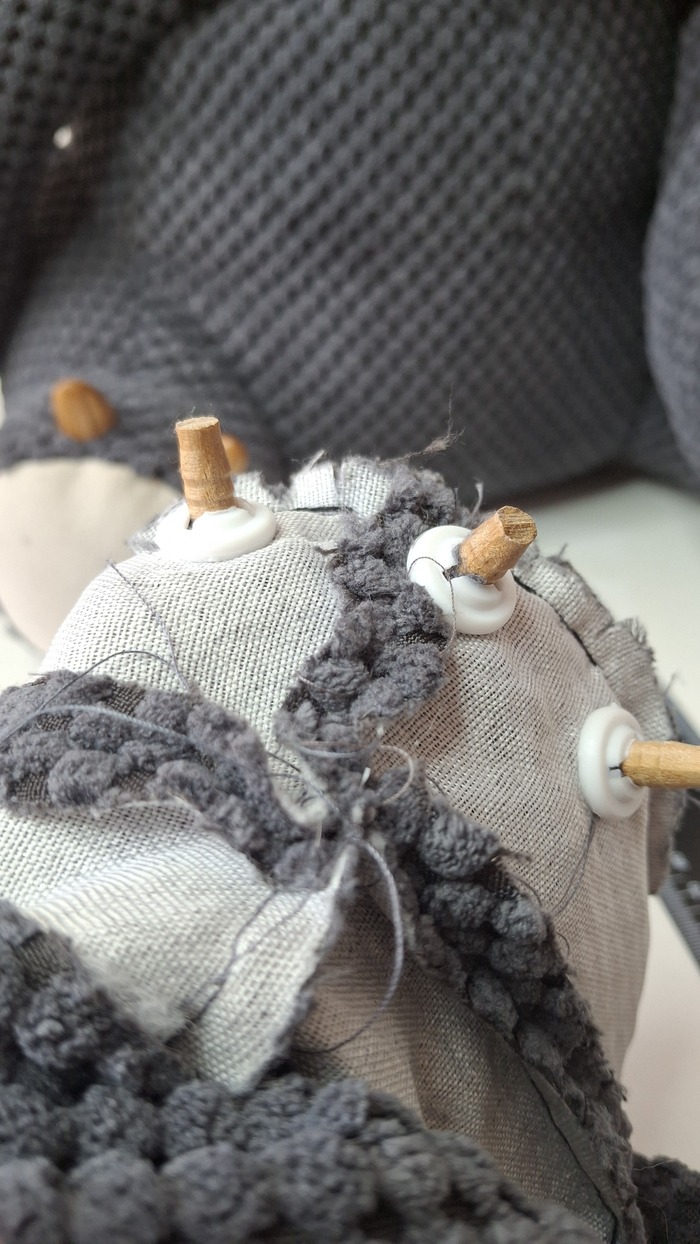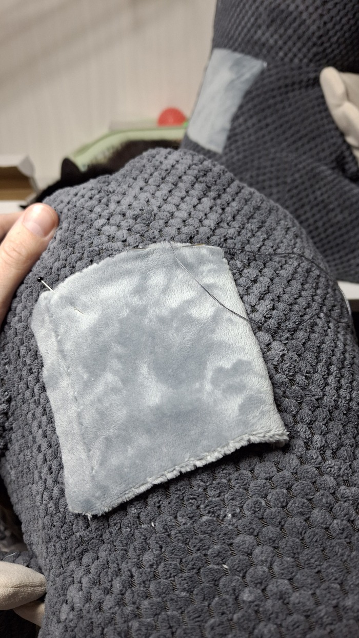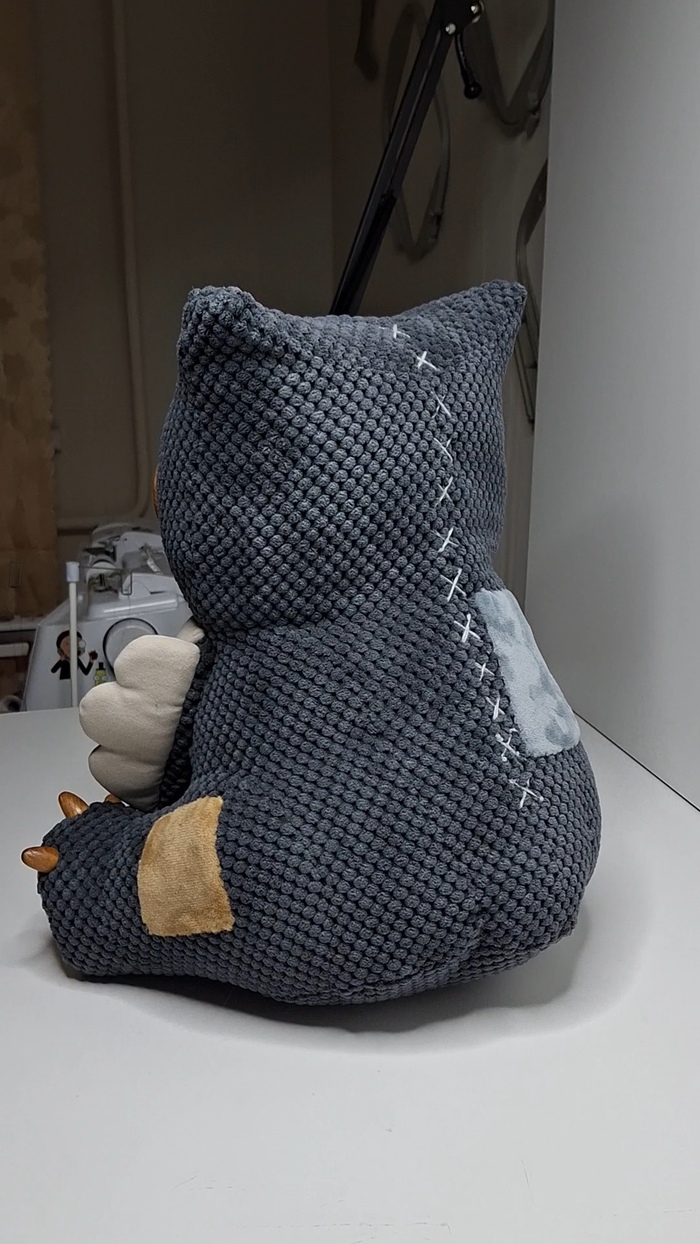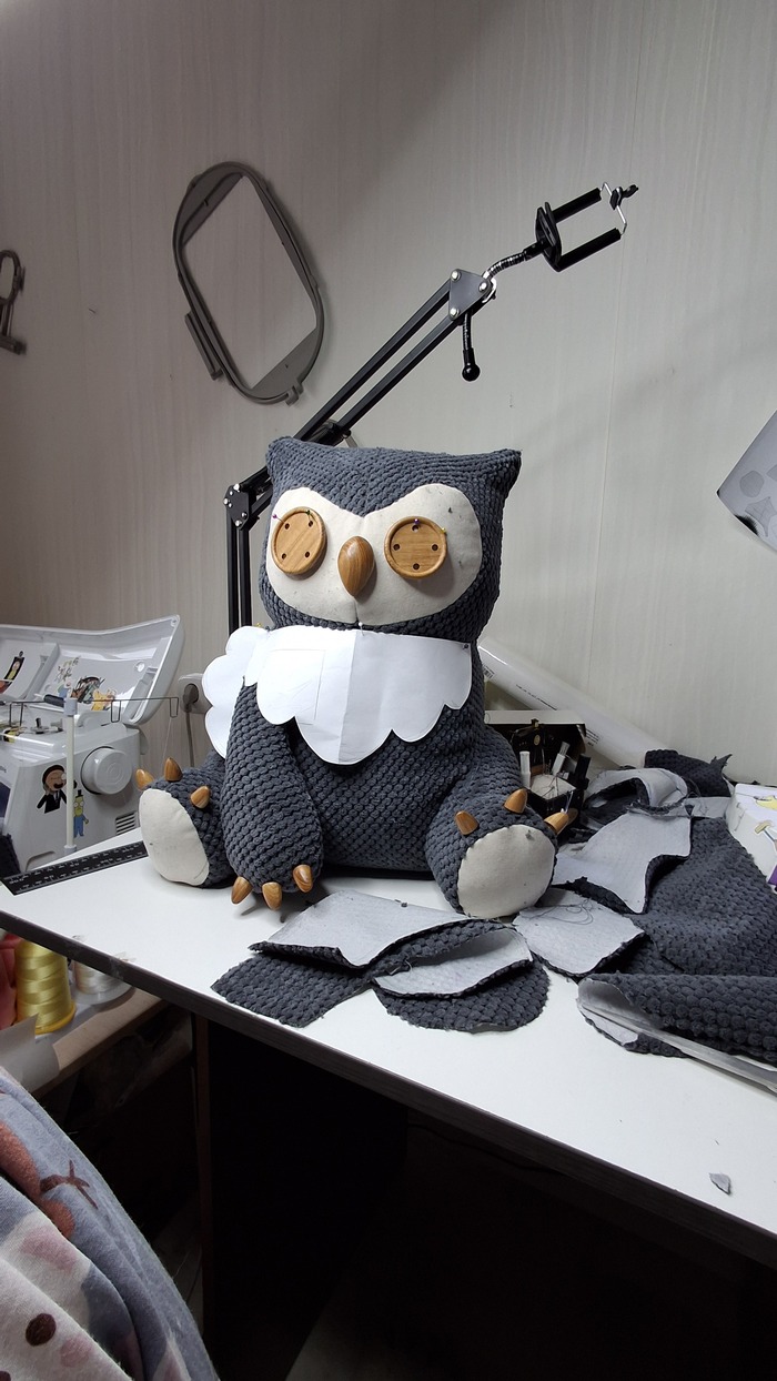 Первая булка мне не понравилась. Решила переделать выкройку.Это мебельный велюр. Он не тянется, как плюшевая ткань для игрушек. Ткань выбирали вместе с заказчиком по текстуре, цвету и мягкости.