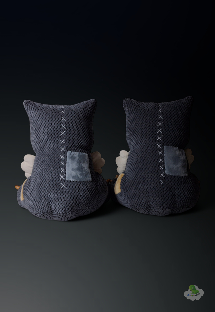 Плюшевая ткань + иск.мех. Машинная вышивка. Веки можно закрыть/открыть. Накидка снимается. Длина тела ~45см.