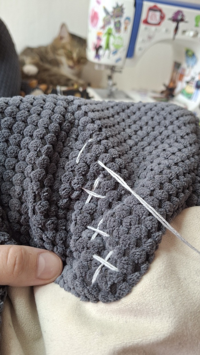 Поэтому закрепляю шипы изнутри подкладочной тканью. Соединяю стыки деталей с полотном. Получается матрас XDD