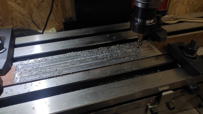 Далее, работа начинается с изготовления кондуктора, чтобы точно позиционировать деталь относительно координат станка и заодно выравнивать плоскость, на которой будет фиксироваться лицевая панель. Это нужно для того, чтобы плоскость фрезерования была везде одинаковая, так как глубина гравировки всего 0.3мм, иначе V образная фреза залезет на соседнюю букву. Для понимания - чем глубже V образной фрезой делаешь проход, тем шире становится канавка, которую ею фрезеруют.