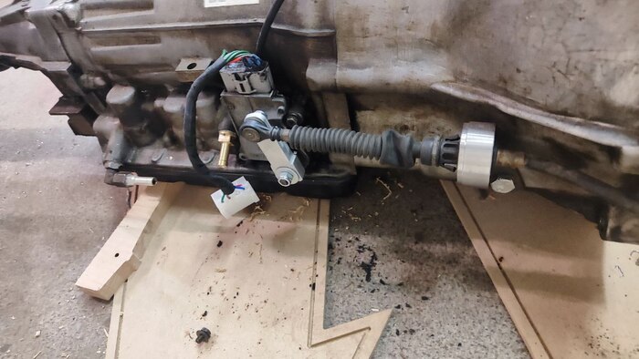 Далее сделал привод селектора, трос куплен на разборке Митсубиси. Сделаны все необходимые крепления. Также проложена трасса до радиатора охлаждения акпп. Радиатор покупал на али, очень хорошего качества, на повседневной машине поставил такой же дополнительный, рекомендую.