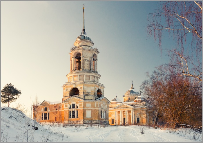 Третьим значимым местом, обязательным для посещения - городской оборонительный вал на старом городище. Путь туда ведет мимо монументального храма. Это Борисоглебский собор. Построен относительно недавно. В 19 веке. К сожалению, история не пощадила и его. Сейчас он заброшен. Закрыт. А одно время в нем был даже (о ужас) колхозный рынок...
