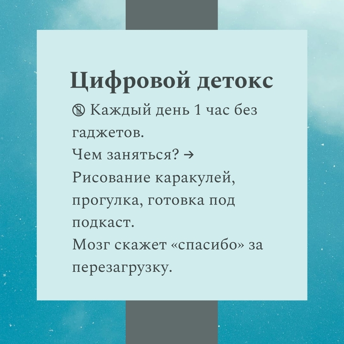 5) Гидратация и питание. Обезвоживание способно ухудшить когнитивные функции и настроение. Достаточное потребление воды — важный аспект здорового питания и поддержания психического благополучия.