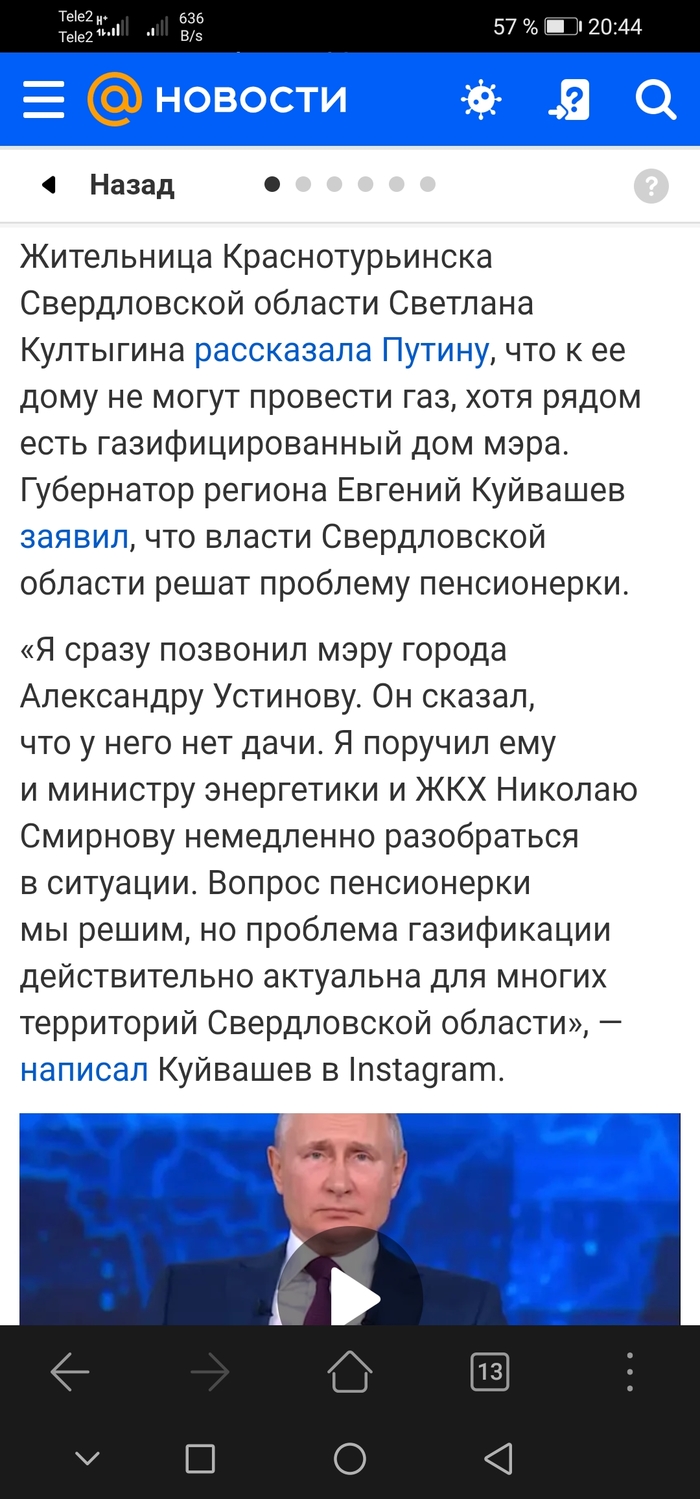 Сегодня прошла горячая линия с президентом. Порадовал кусочек из новостной ленты.