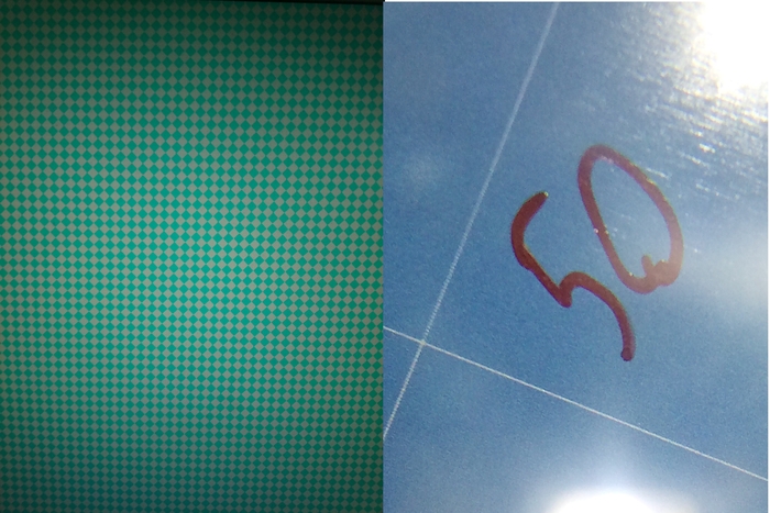 Пытались спрашивать у мастеров в чём вообще дело - и некоторые рекомендовали прочистить линзы. Лазер, зеркало и фильтр нейтральной плотности были тщательно очищены, но результат не изменился вовсе. После мы попытались связаться с самой Xante (пусть и через переводчик). Уж кому как не создателю знать что делать. Там нам посоветовали попробовать почистить энкодер т.к. лента то может и чистая, но сам он вполне может быть и запылён. Сделали и это. Результат, увы, не изменился. Нам в письме человек объяснял, что индикатор на энкодере должен на всё пути гореть зелёным. Однако у нас почему-то и до прочистки и после выглядит всё примерно так: