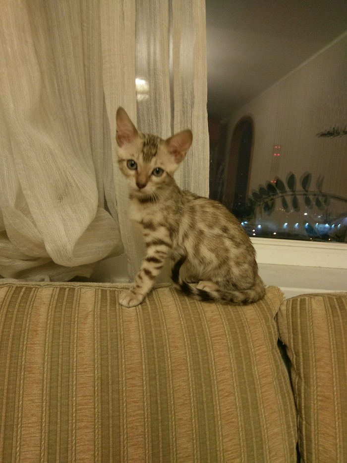 Вот такая бенгальская красавица живет у нас почти месяц. Зовут котенка Азура (кто знает, тот поймет ;) ), ей сейчас больше 3-х месяцев.