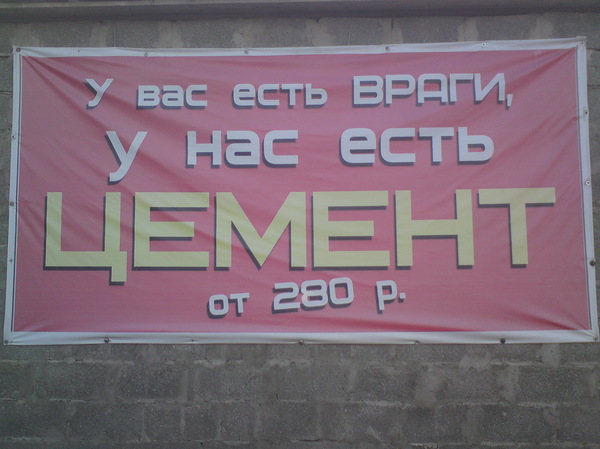 Nekromanth Креатив от производителя 9 лет назад По пути на работу наткнулся на такой вот креативP.S. Сорри за шакала, телефон времен Бородинской битвы Реклама Пиар Цемент Баннер