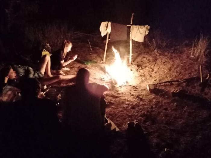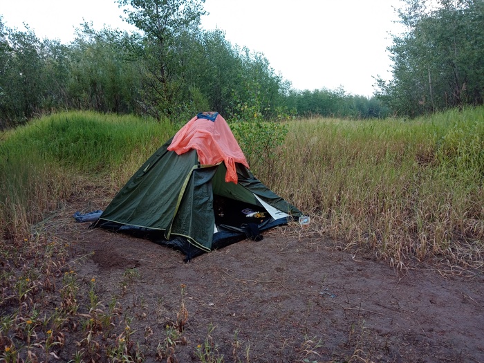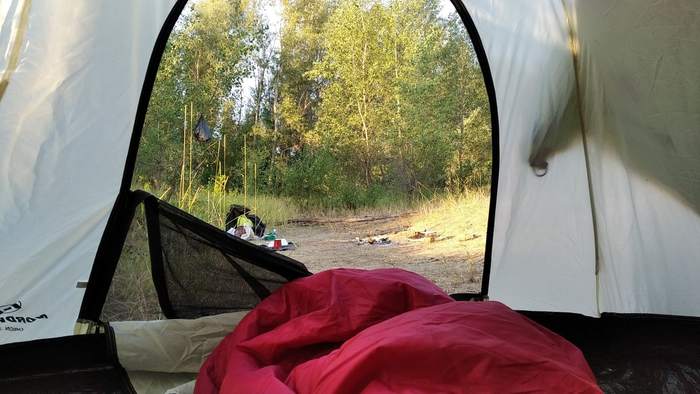 На то место куда мы хотели изначально, попасть не получилось. Все зарасло камышом и откровенно говоря, ожидало нас там жуткое мелководье и быстрое течение. Пришлось плыть дальше, но не долго. Проплыв около 500-700 метров мы попали на песчаный пляж. Разбили лагерь. Пожарив шашлык, почти сразу отправились на боковую.