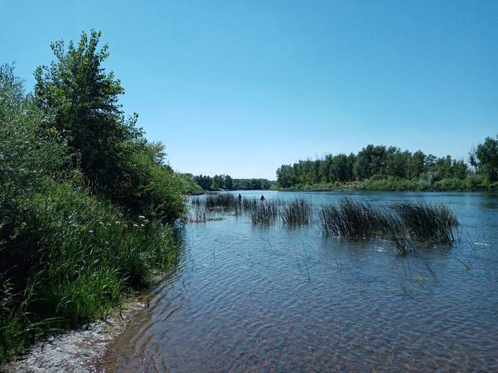 На второй день мы выяснили, что назад дороги нет - дорога "утонула" в ужах и камышах. Да и перспектива топать в +40 до электрички особо не радовала. Приняли решение плыть до самой Татарской Каргалы на следующий же день, а это километров 8. 3 часа в воде. Но к этому я ещё вернусь.