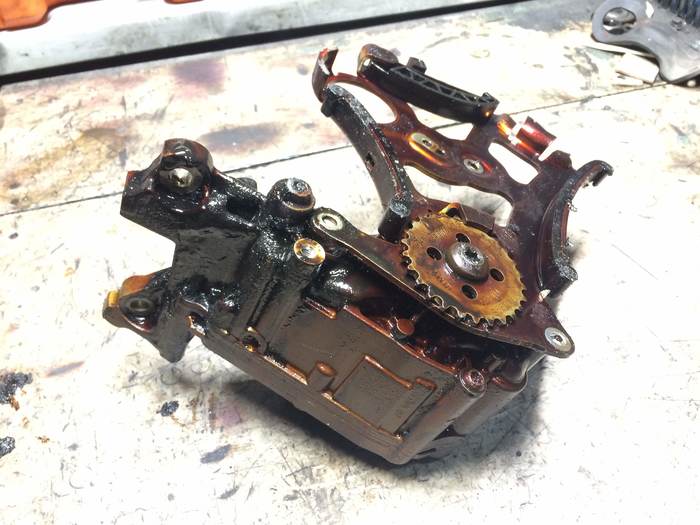 Это писец, товарищи. Ниже на фото головка, поддон и масляный насос от двигателя BMW N52. Автомобиль 2012 г.в, пробег 98000 км. И за всё это время масло не менялось НИ РАЗУ!!!, только подливали. И самое интересное что, ребята которые привезли нам этот ужас отмыть, сказали что клиент заехал к ним с проблемой не связанной с двигателем, а лишь между делом решил заменить прокладку клапанной крышки.