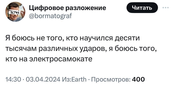 Начали общаться, он рассказывал про работу, какой он весь мужественный и серьезный, томно и загадочно смотрел в даль, а потом смахнув невидимую слезу воспоминаний сказал, что он бывший участник одного известного музыкального коллектива «Вагнер», даже показал фотографию глаз в балаклаве 🙃.
