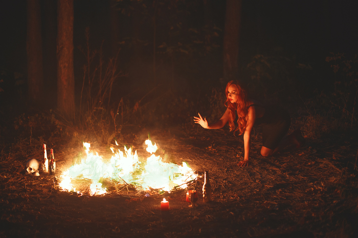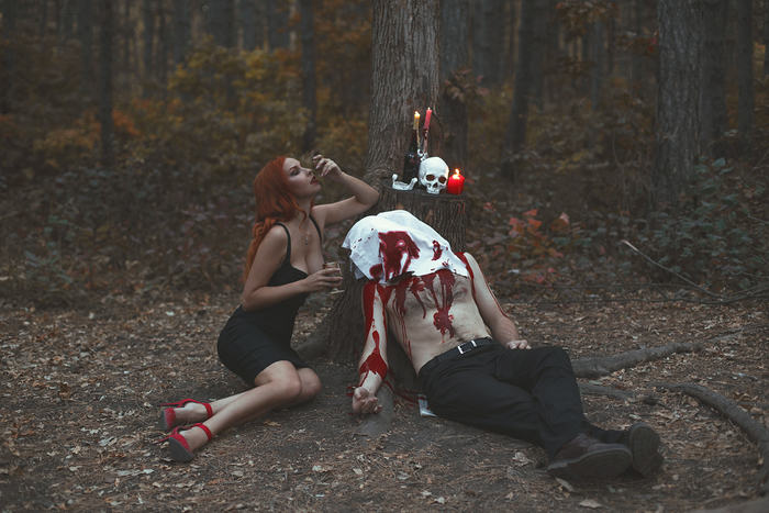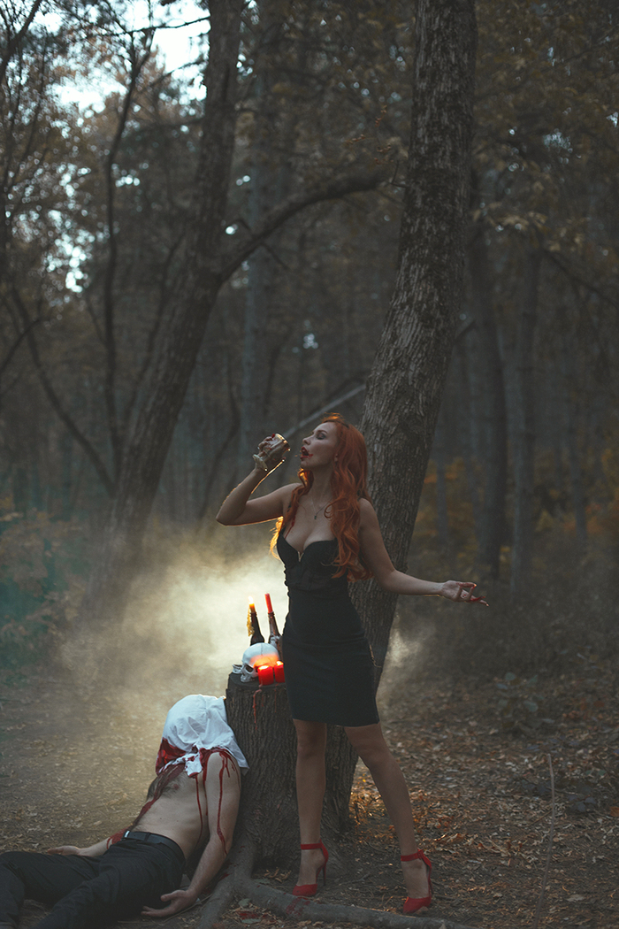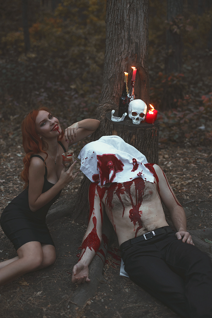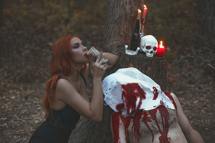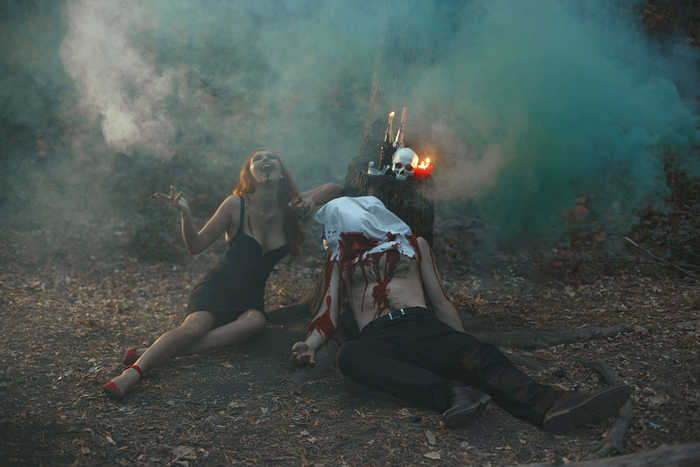 Фотосессия на Хэллоуин. Ведьма и ее жертва