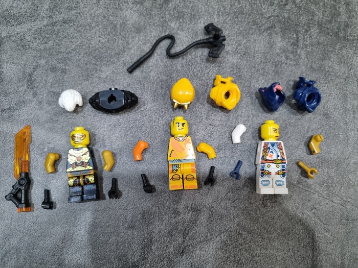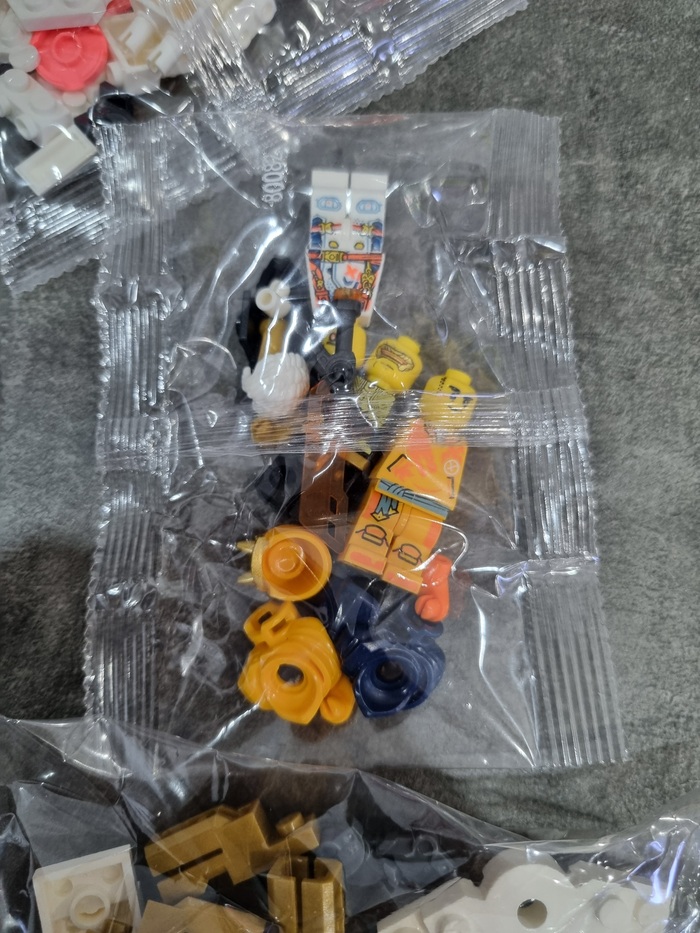 Так же в неоригинальном наборе все минифигурки лежали в разобранном виде в отдельном пакетике. причем у них у всех были отсоединены руки, но торсики, ноги и головы собраны.