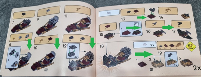 Отдельная боль неоригинальной инструкции это расположение этапов сборки: если у оригинала на 1 листе - 1 этап сборки ( иногда 2-3), то у неоригинала на одном листе может быть 4 и более этапов. Так же расположение этих этапов вызывает кучу вопросов: на одном листе этапы могут идти сверху-вниз слева-направо , в то время как на соседнем листе они идут слева-направо сверху-вниз. Это сильно меня запутало во время сборки.