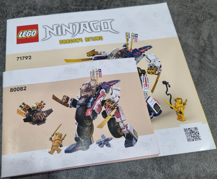 У неоригинальной инструкции все так же отсутствуют логотипы Лего, Ниндзяго и QR-код, который ведет на сайт, немного отличаются рендеры набора на инструциях. Так же у инструкции 80082 отсутствуют рекламные листы. Количество шагов сборки при этом одинаковое:142.